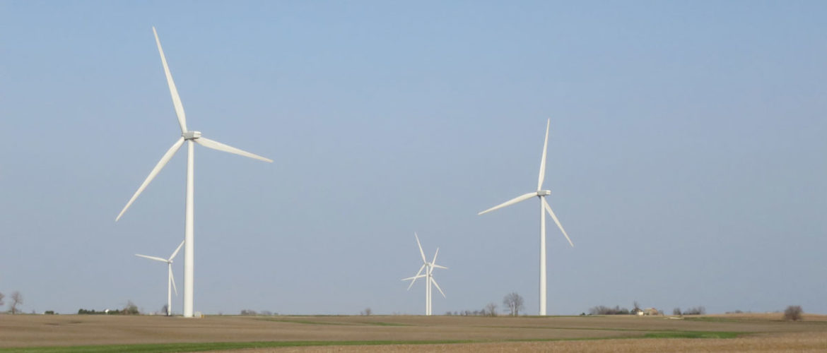 Illinois has over 2,200 wind turbines. On larger turbines, blade tips can spin at over 186 mi/hr (300 km/hr). Photo SJ Taylor, 13 April 2017.